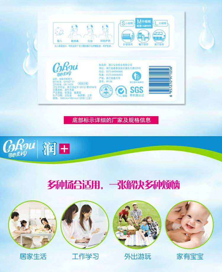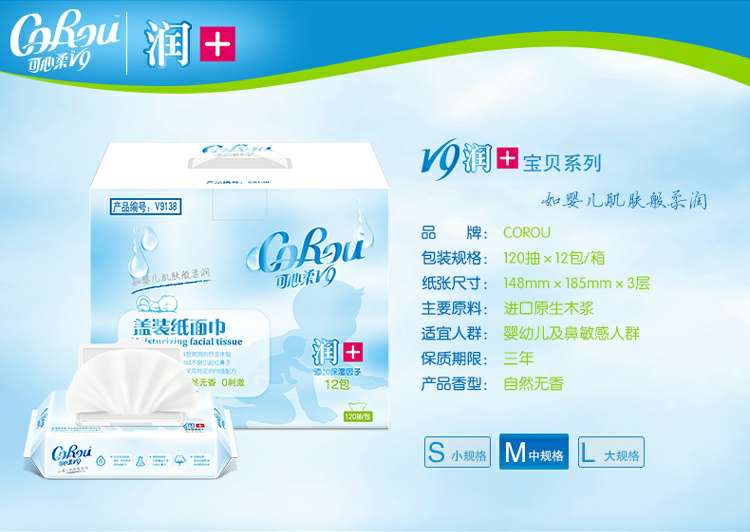 CoRou V9润+系列CoRou云柔系列白色木浆110抽
