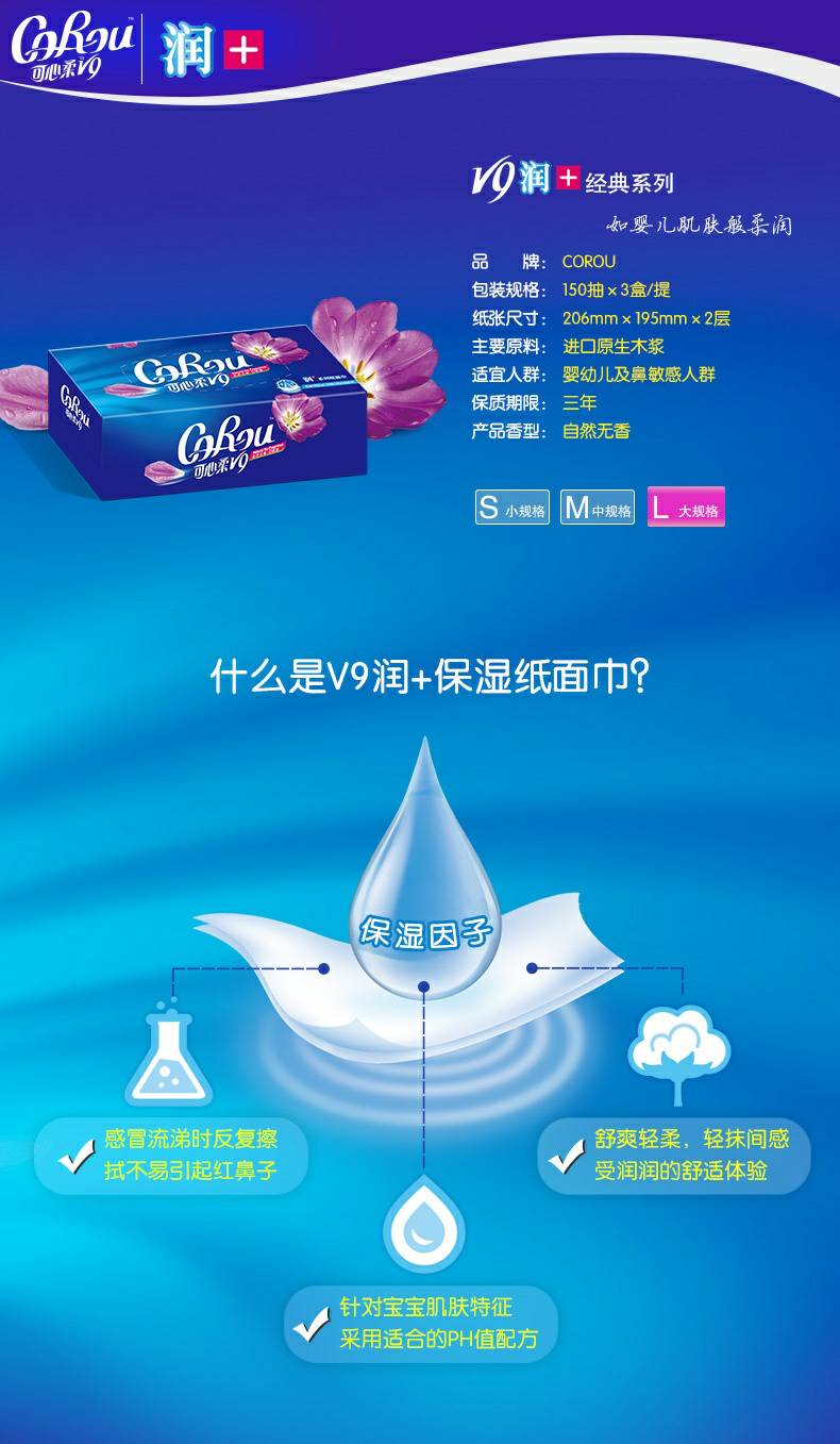 CoRou V9润+系列CoRou云柔系列白色木浆110抽