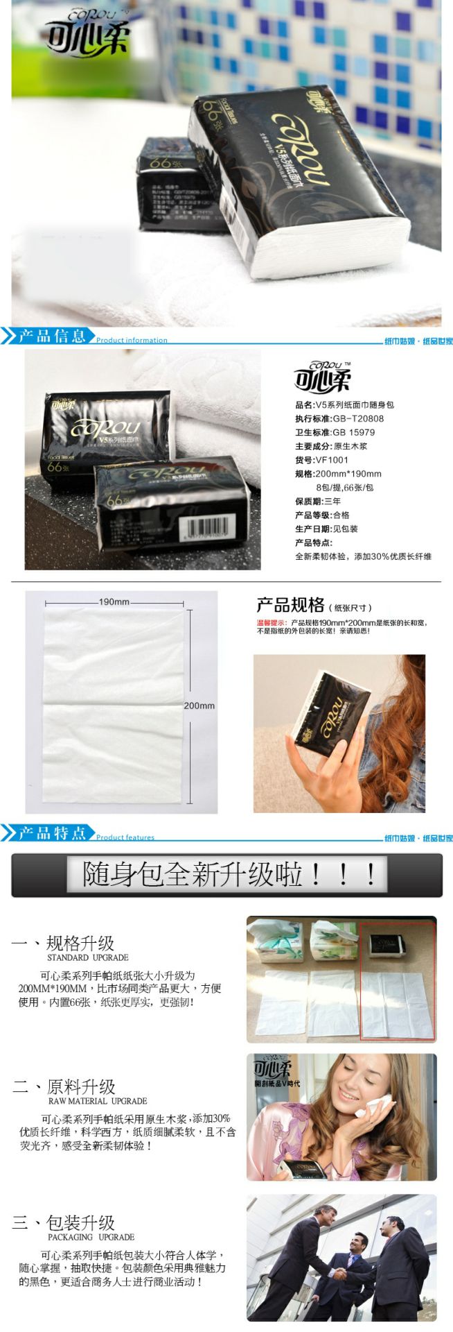 可心柔 V5系列CoRou云柔系列白色木浆60抽